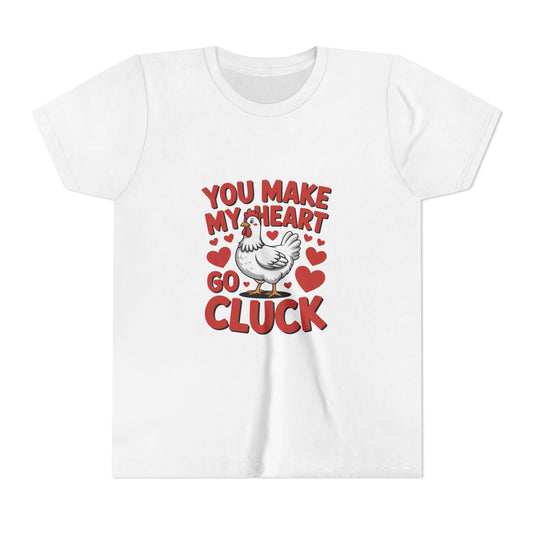 You Make My Heart Go Cluck Youth T-Shirt, Valentine’s Day Kids Chicken Tee