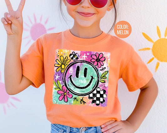 Retro Girls Smiley Face Kids Shirt, Girly Happy Face Youth Tee, Trendy Kids Shirt